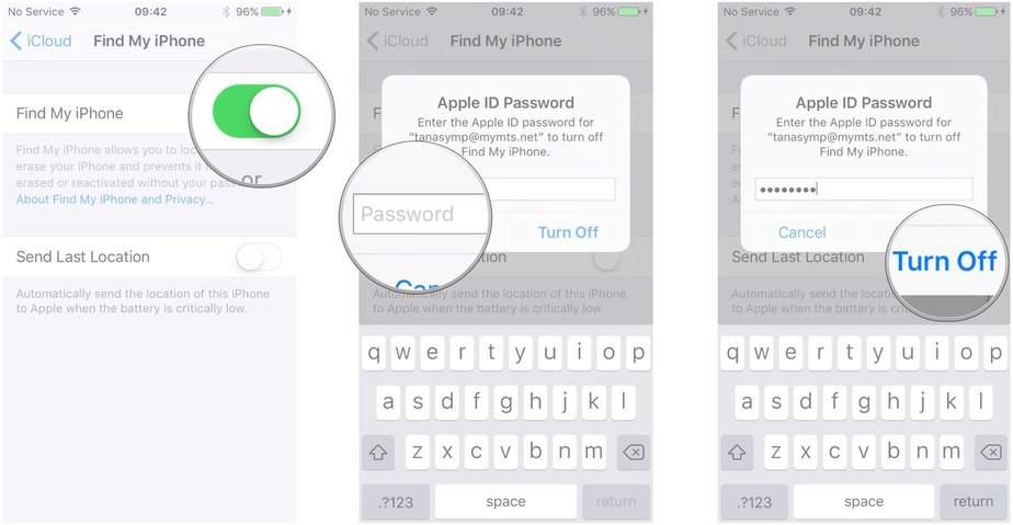 Switch Find My iPhone to Off.