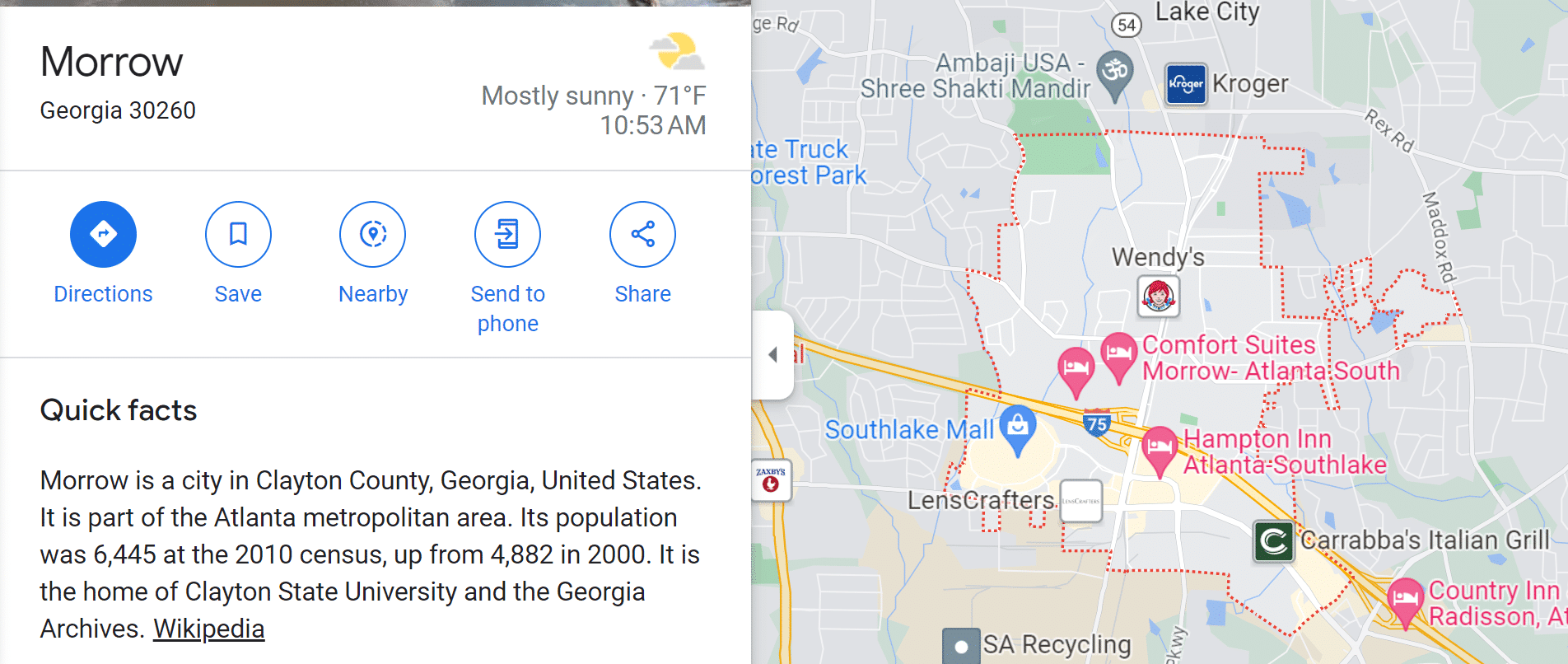 Learn More About Morrow on Wikipedia.com Open & Explore Morrow Google Map on maps.google.com Locate Nearby Morrow Google pharmacies on google.com Browse List of Morrow public and private schools on GreatSchools.Org View Current Morrow weather report weather.com